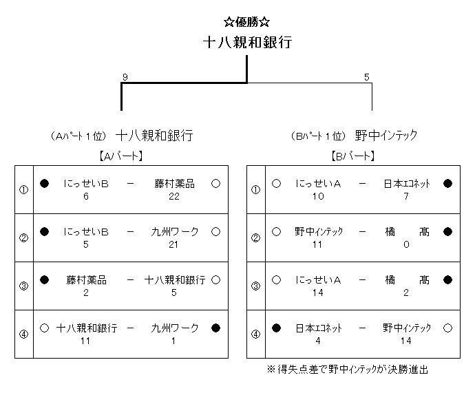 大会結果(予選リーグ及び決勝戦)は次の通りです。