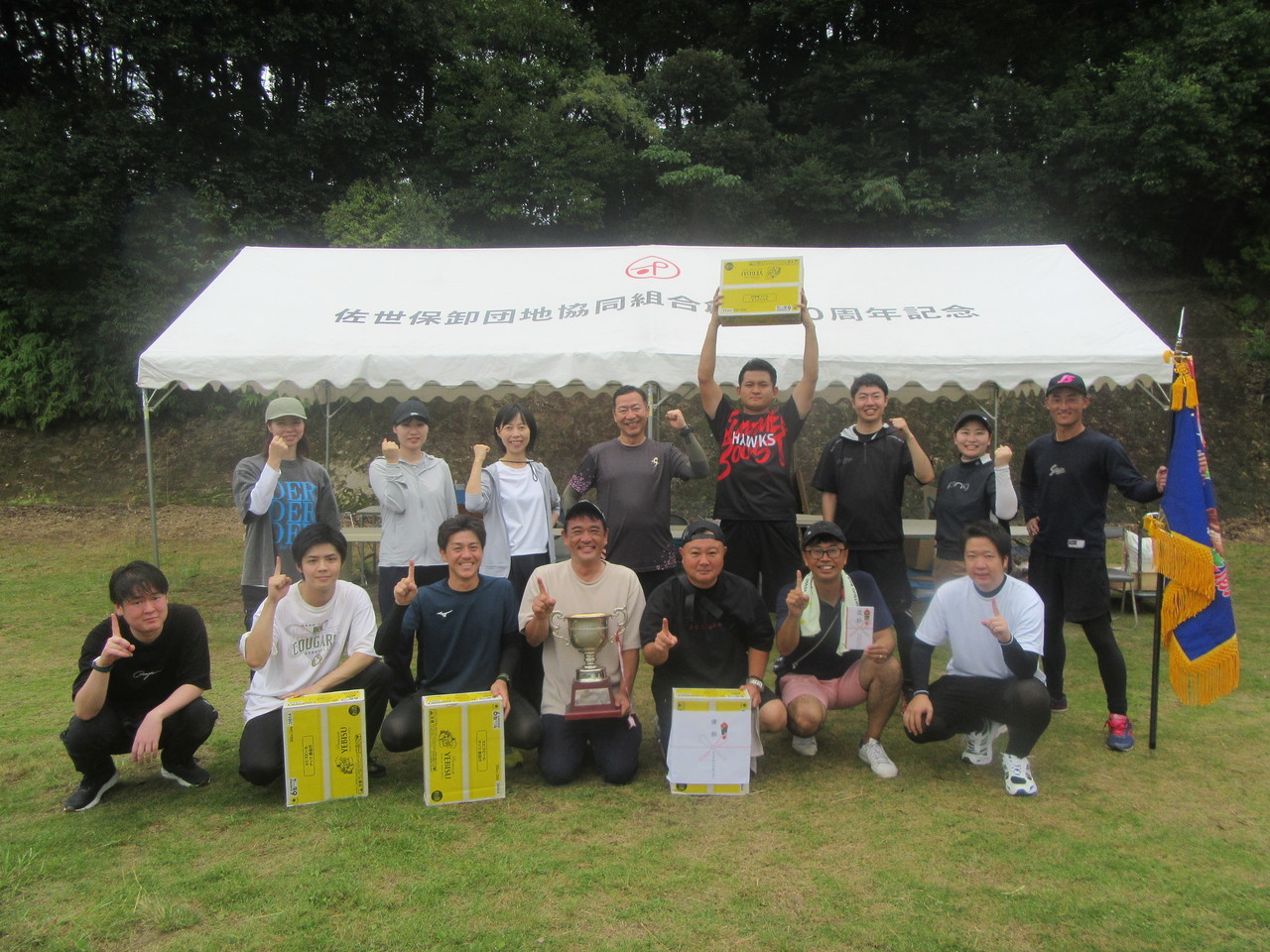 9月27日、吉井北部運動広場において第54回卸団地ソフトボール大会が開催されました。8チームが2パートに分かれて熱戦を繰り広げたあと、各パートの1位同士で決勝戦が行われ、十八親和銀行が23年ぶりに優勝しました!